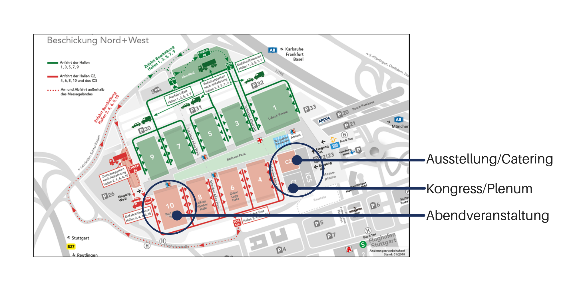 Das ICS (Internationales Congresscenter Stuttgart) ist heute eines der größten und modernsten Kongresszentren Deutschlands. Mit einer Gesamtkapazität von bis zu 10.000 Personen ist das Internationale Congresscenter Stuttgart das Kommunikations- und Veranstaltungszentrum der Messe. Bis zu 25 Tagungs- und Konferenzräume sind auf 1.700 m² durch flexible Wandsysteme zu kreieren. Der Kongresssaal mit einer Größe von 2.600 m² trägt zu einer Gesamtgröße des ICS von beeindruckenden 9.200 m² bei!